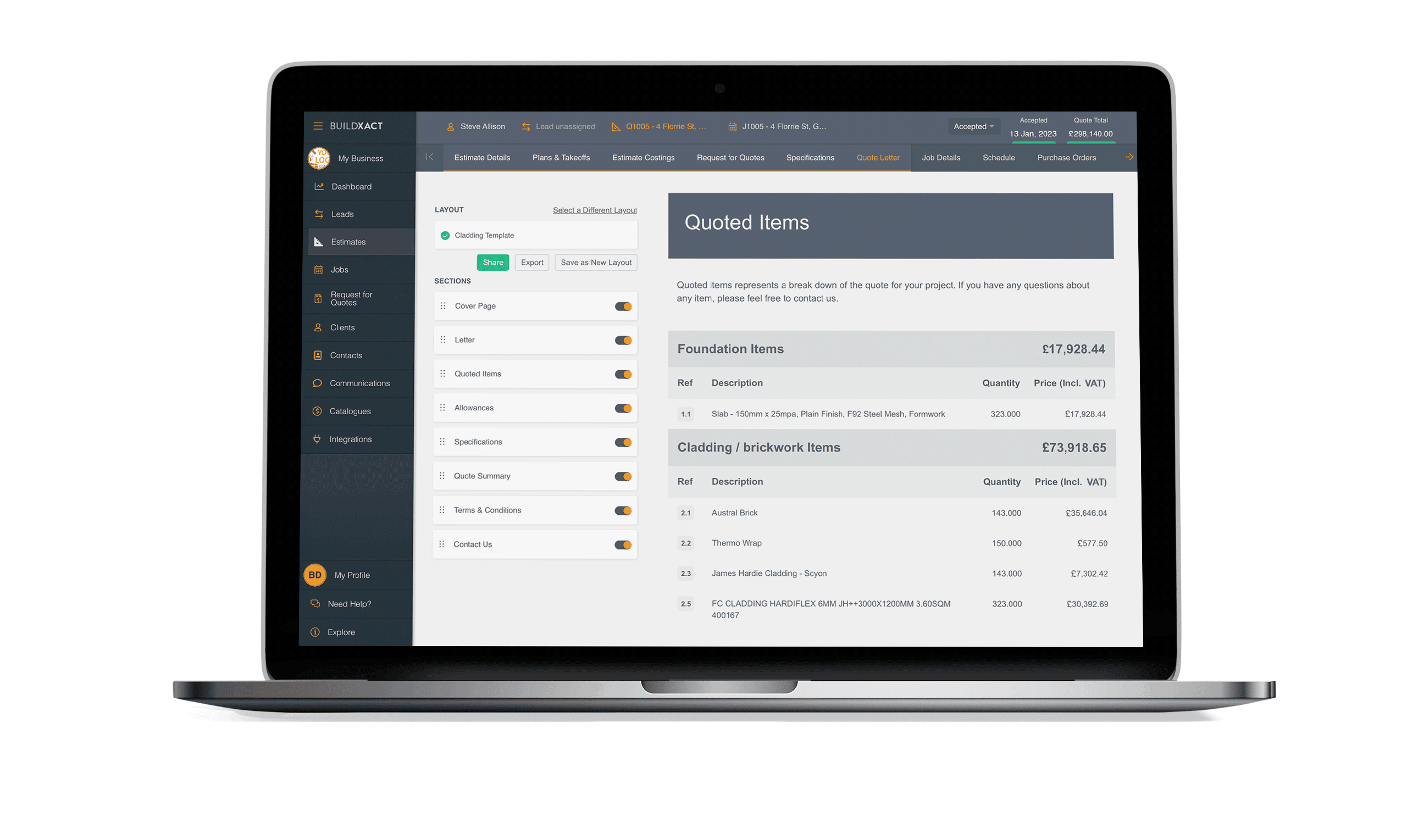 Never miss an item with checklist style estimates and easily create accurate quotes that include labour and overhead.